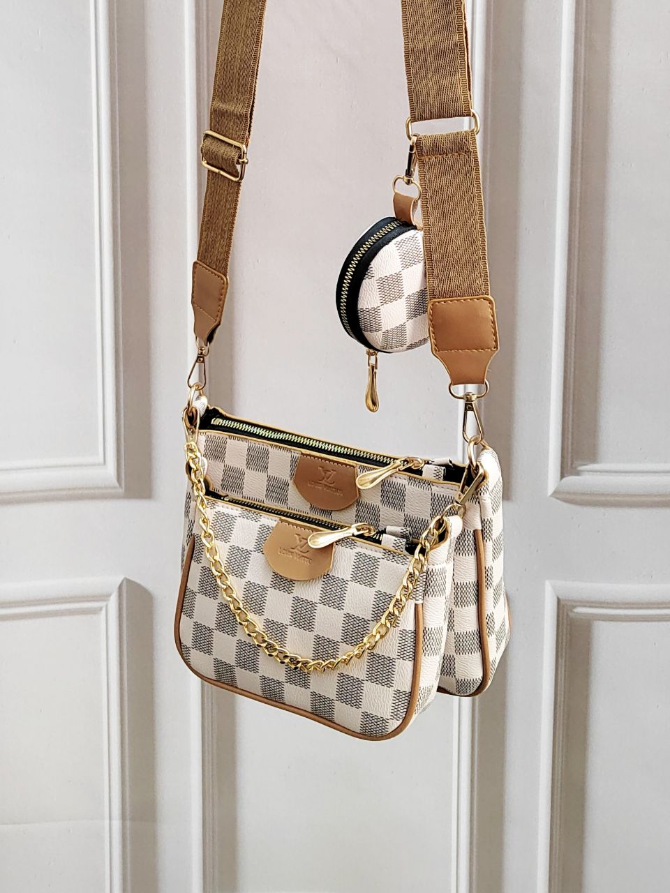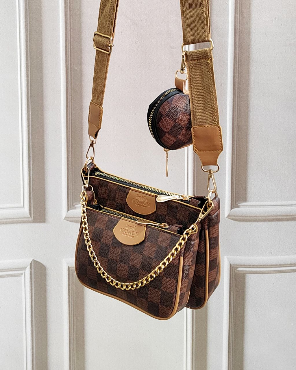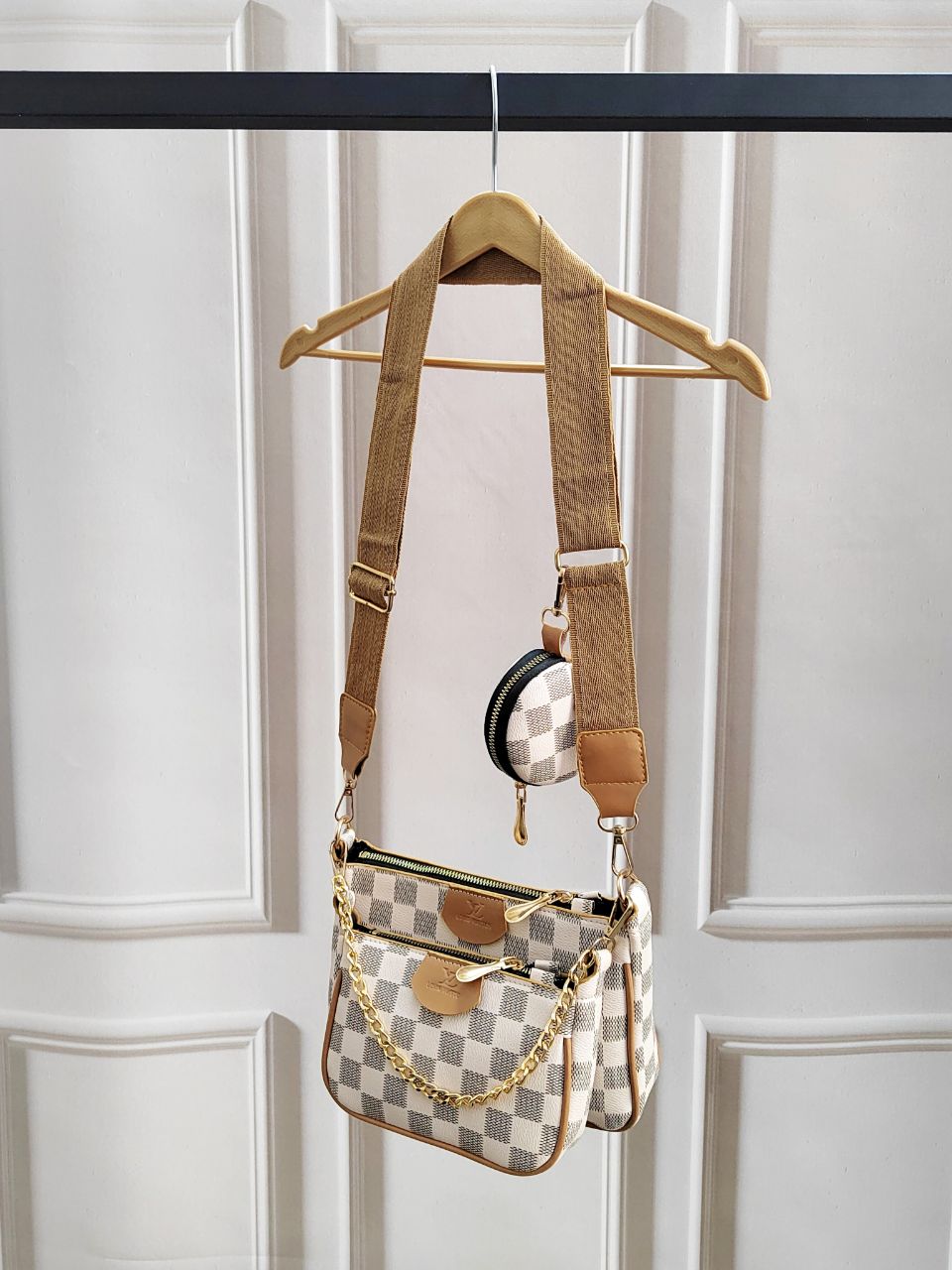 مشخصات اصلی رنگ چهار خونه کرمیچهار خونه قهوه ایسفید و مشکیمشخصات فرعیجنس کیفچرم با کیفیتبند کیفقابل تنظیم